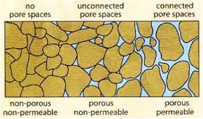 - Note: Most porous rocks are permeable with the exception of clay in which pore spaces are so small that they are often sealed with groundwater held by surface tension. Another exception – granite is non-porous but permeable. It is a crystalline rock and hence non-porous. Its individual crystals absorb little or no water but the rock may have numerous joints/ cracks through which the water can pass rendering it permeable.