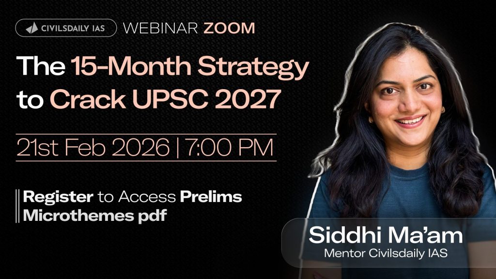 ![🔴[UPSC Webinar for 2027] By Siddhi Ma’am, Mentor, Civilsdaily IAS | The 15-Month Strategy to Crack UPSC 2027 | Join on 21st Feb at 7PM](https://d18x2uyjeekruj.cloudfront.net/wp-content/uploads/2026/02/Siddhi-thumb-1-1568x882.jpg)