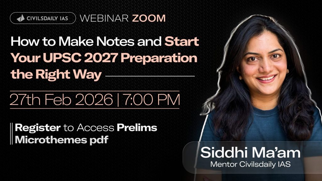 ![🔴[UPSC Webinar for 2027] By Siddhi Ma’am, Mentor, Civilsdaily IAS | How to Make Notes and Start Your UPSC 2027 Preparation the Right Way | Join on 27th Feb at 7PM](https://d18x2uyjeekruj.cloudfront.net/wp-content/uploads/2026/02/Siddhi-thumb1-1-1568x882.jpg)