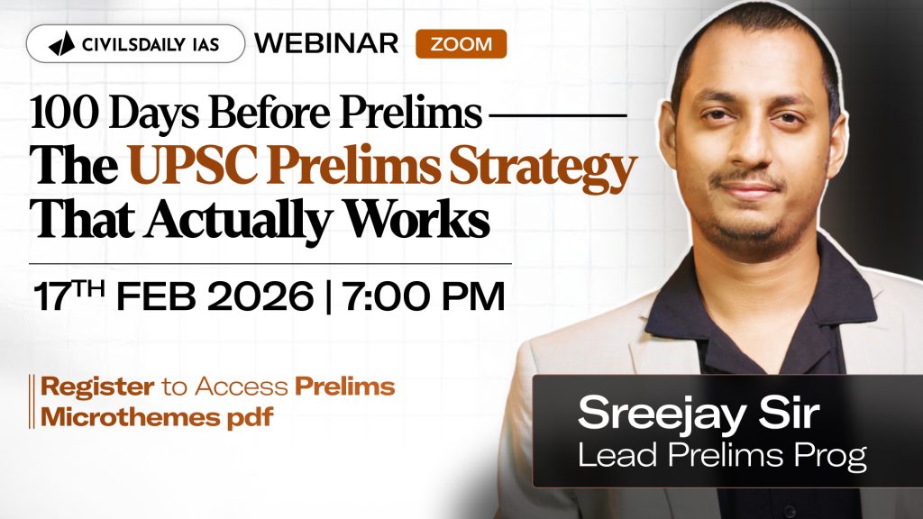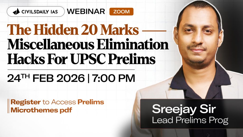 ![🔴[UPSC Webinar for 2026] By Sreejay Sir, lead Prelims Prog, Civilsdaily IAS | The Hidden 20 Marks: Miscellaneous Elimination Hacks for UPSC Prelims | Join on 24th Feb at 7PM](https://d18x2uyjeekruj.cloudfront.net/wp-content/uploads/2026/02/sreejaythumb4.jpg-1-1568x882.jpeg)