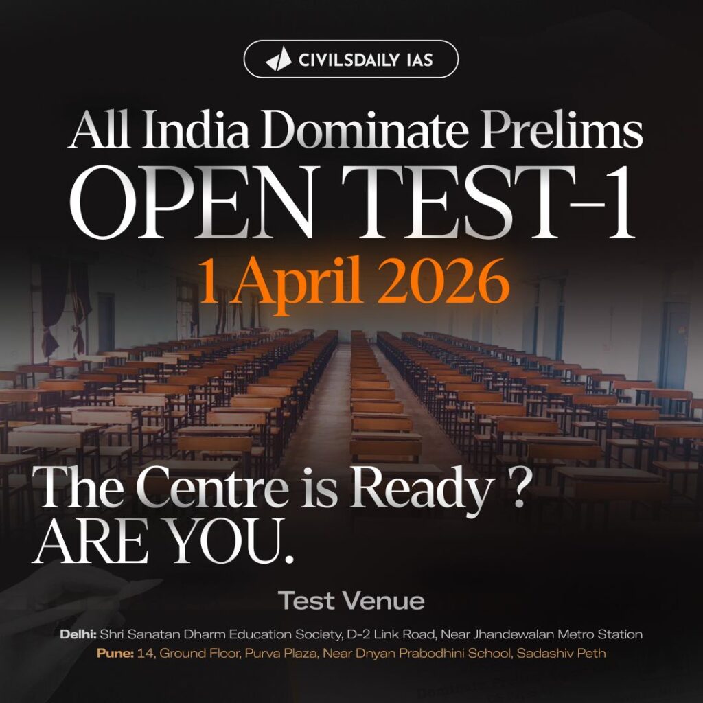 Civilsdaily’s All India Dominate Prelims Open Test is Civilsdaily’s national-level UPSC Prelims simulation designed to help aspirants experience the actual pressure, pace, and performance demands of the UPSC Prelims Examination. Built to mirror the real exam in structure and intensity, it gives aspirants a clear reality check before the actual test.